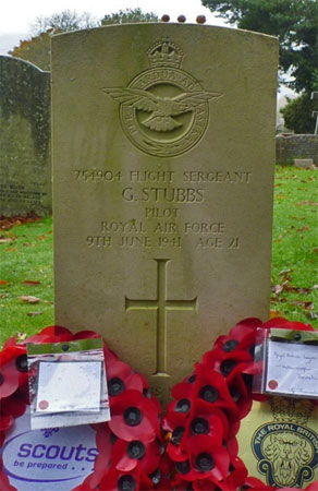 Pilot - F/Sgt Gordon Stubbs RAFVR (754904), aged 21, of Hathersage. Buried Hathersage Churchyard, Derbyshire.