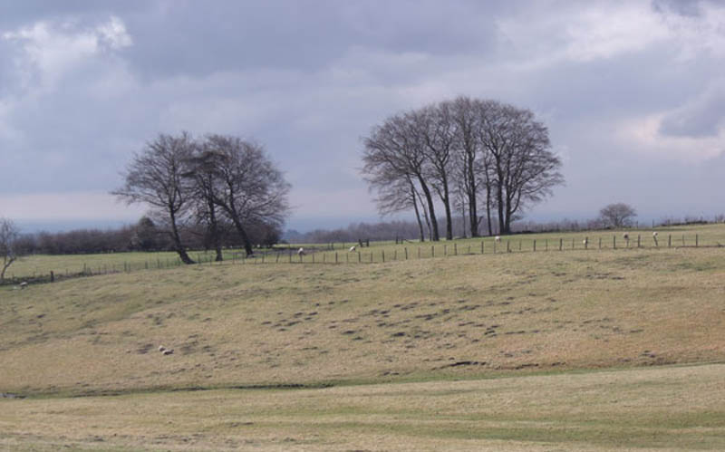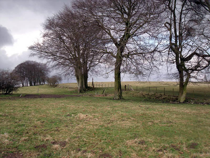 Halifax DT525 flew into the ground close to the group of trees shown in the photograph shown above and the main bulk of the aircraft is reported as travelling into these trees. Over the years small fragments have been found within a twenty metre radius of the trees. I visited the site in June 2004 with guidance from air historian Eric Barton who had found small fragments in the area some years previous.