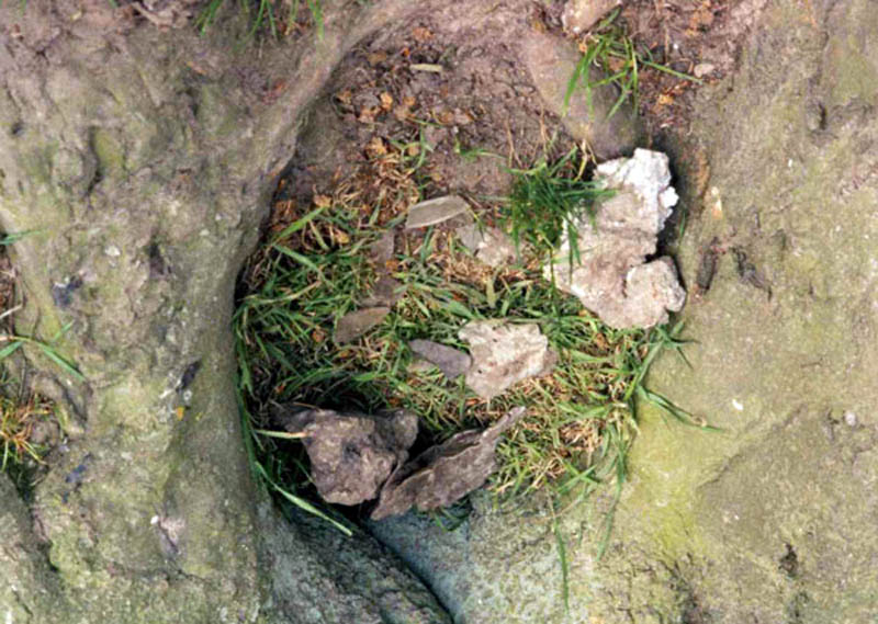 These were the small fragments of the aircraft that were found on the surface and placed together in a tree root in 2004.
