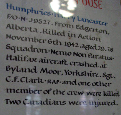 Navigator - F/O Harry Lancaster Humphries RCAF (J/9527), aged 29, of Indian River, Ontario, Canada. Buried Newton on Ouse Churchyard, Yorkshire.