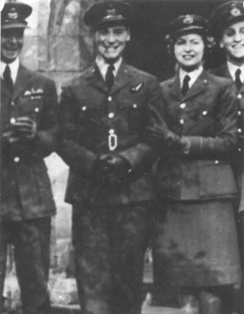 George Turner was born at the Custom House in West Ham, London on 19th August 1920 and was the eldest son of George Thomas Turner Senior and Lilian (nee Scurr) Turner. His family were evacuated to Reading during the war and those who survived settled there afterwards. The date he enlisted into the RAFVR is not yet known but prior to receiving a commission, to the rank of P/O on probation (emergency) on 11th October 1941, he was in the rank of F/Sgt with service number 746895. He was later promoted to F/O on 14th August 1942 but must have been in the rank of Acting F/Lt when he died in November 1942 as there is no reference in the London Gazette to him receiving the promotion to F/Lt under the terms of his commission. He married WAAF Irene Madge Warr in the Bulmer district of North Yorkshire in the latter part of 1942 (possibly at Newton on Ouse and in the weeks before his death). She was probably serving in the Linton on Ouse area at the same time but later served at Tempsford airfield. The photograph above shows them at their wedding. George Turner was the Squadron Gunnery Officer at the time of this accident at Wass and had volunteered to act as rear gunner for this flight. In the weeks before this incident he, Mills, Edghill and possibly some other members of the same crew listed above were involved in a flak incident but the details of it are not yet known. I thank Mr Ken Burgess, cousin of George Turner, for allowing the photograph and for additional information shown here. The photograph of his gravestone was found on an internet forum posted by "Clive".