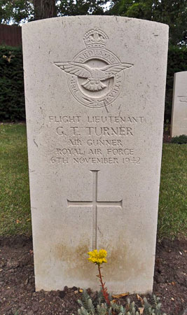 Rear Gunner - F/Lt George Thomas Turner RAFVR (109520), aged 22, of Reading. Buried Henley Road Cemetery, Reading, Berkshire.