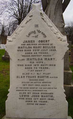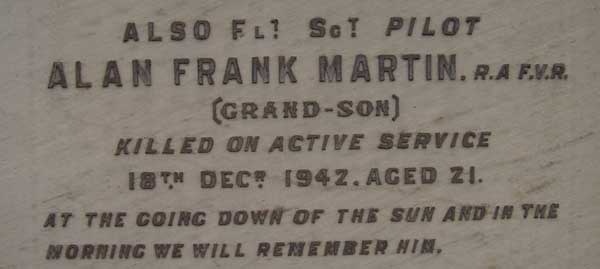 Pilot - F/Sgt Alan Frank Martin RAFVR (932841), aged 21, of Ilford. Buried Manor Park Cemetery, Essex.