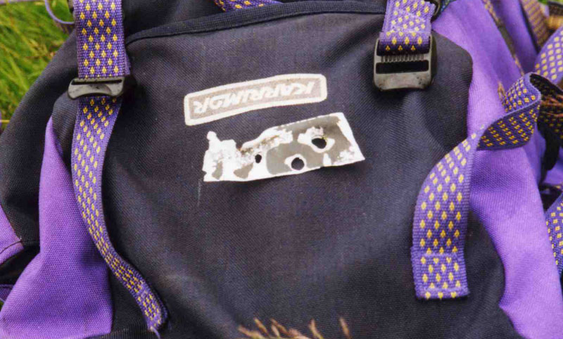 Historians Ken Reast and David Thompson gained permission from the Estate to locate a small number of pieces at (which I believe is) the correct crash site of EB181 in the early 1990s, these were placed in a broken down wall for protection. Upon contact with them I then found two tiny pieces in the same area in 2002, and again placed them in the same wall. These pieces remained there until the wall was rebuilt and since then I have not seen them again although I doubt the estate workers who rebuilt the wall would take them away so they were probably left in the centre of the wall and fresh stones added around them. Nothing else has ever been found on the surface since my last finds. The photograph below shows one of my two tiny pieces found which I believe is from EB181.