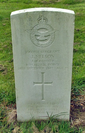 Air Gunner - Sgt James Nelson RAFVR (1002811), aged 23, of Preston. Buried New Hall Lane Cemetery, Preston, Lancashire.
