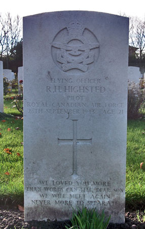 Pilot - F/O Raymond Harold Highsted RCAF (J/26984), aged 21, of New Westminster, British Columbia, Canada. Buried Harrogate Stonefall Cemetery, Yorkshire.