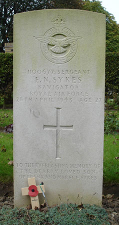 Navigator / Wireless Operator - Sgt Eric Norman Sykes RAFVR (1100677), aged 27. Buried Thornaby on Tees Cemetery, Yorkshire.