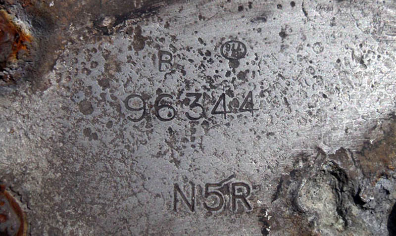 A number of parts at the crash site still show part numbers but as yet have do not know how Beaufighter number sequences work to be able to identify any of them. The piece above shows a clearest part number and a tiny "Bristol" inspection stamp.