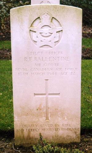 Robert Ballentine. Robert Elmer Ballentine was born in Toronto, Ontario, Canada on 10th December 1921, and was the son of Wilfrid Laurier and Grace (nee Elmer) Ballentine of 102 Vesta Drive in the city. His father Wilfred's father had moved to Canada from Portadown, Ireland before Wilfred was born in Hamilton, Ontario. Robert (or Bob) had a sister (Margaret) and a brother (Richard) and another brother who had died at a young age in 1931. Bob and the pilot of Halifax LL178, David Evans, were friends prior to them enlisting into the RCAF. Bob had attended both Forest Hill Public School and then the University of Toronto Schools (UTS) where David Evans also went to and both boys also attended Grace Church-on-the-Hill. Not only were Bob and David friends but both their fathers were friends as was Bob's sister and David Evans. It was no doubt a double tragedy to both families when both men were killed in the same crash in Yorkshire, England in March 1944.