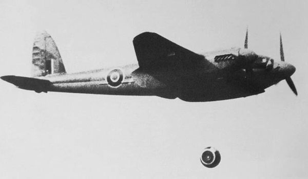 The "Highball" was developed by Barnes Wallis as an alternative to the torpedo, it was to be carried by Mosquitos, the Highball could cause more damage to ships than a torpedo as the explosive payload could be larger. The Highball could also skip over the traditional torpedo defences which could be in place around shipping. The Tirpitz was to be the first ship attacked by Highball at the same time as the Dam Buster Raids but this was called off as the Germans had secured all areas which could be damaged by bouncing bombs after the Ruhr raid. 618 Squadron was soon transferred to Australia to assist the Americans. The Americans shelved the idea, making the crash on the North Yorkshire Moors of this 618 Squadron aircraft with a Highball quite rare.