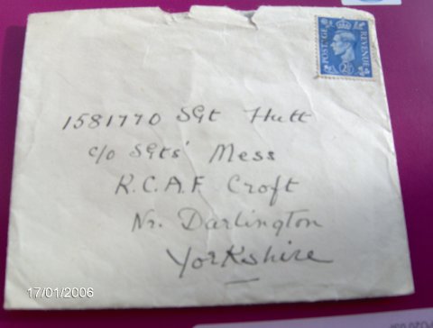 An envelope sent by Geoff's mother to him whilst he was stationed at Croft.