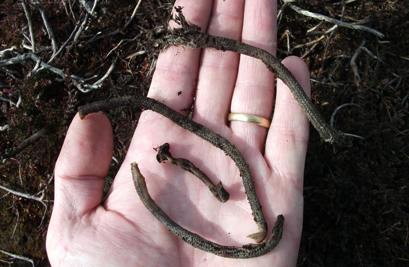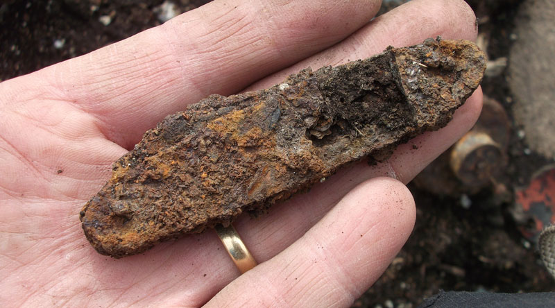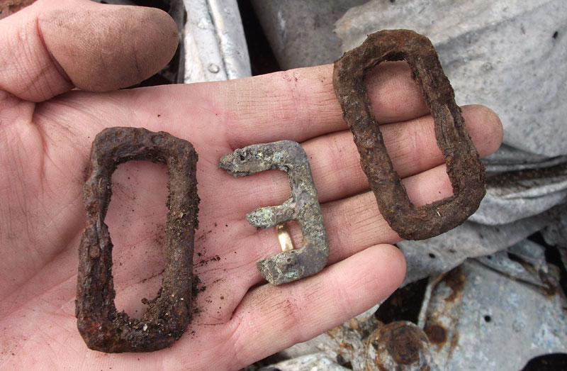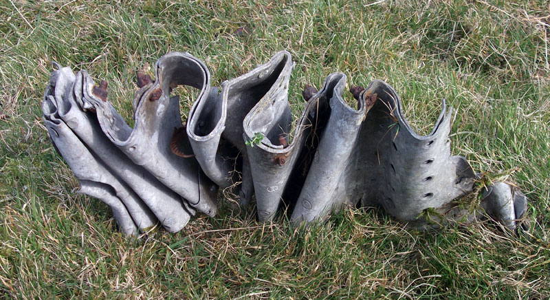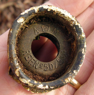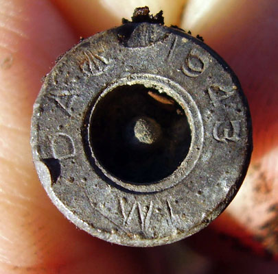 Examples of the exploded .303 bullet cases at the crash site, on the left is a 1943 dated one and on the right is one from 1944.