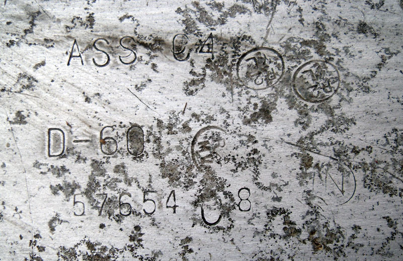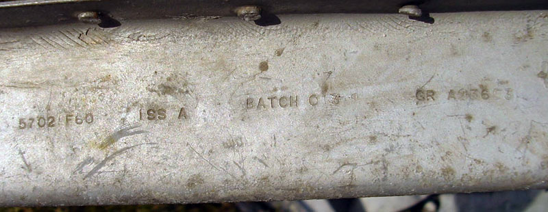 An example of how the Halifax aircraft parts were marked, this piece contains the lettering "HAL 718" and I have not seen the prefix "HAL" on any other Halifaxes bits. The manufacturor of the piece "D&B" is not yet known.
