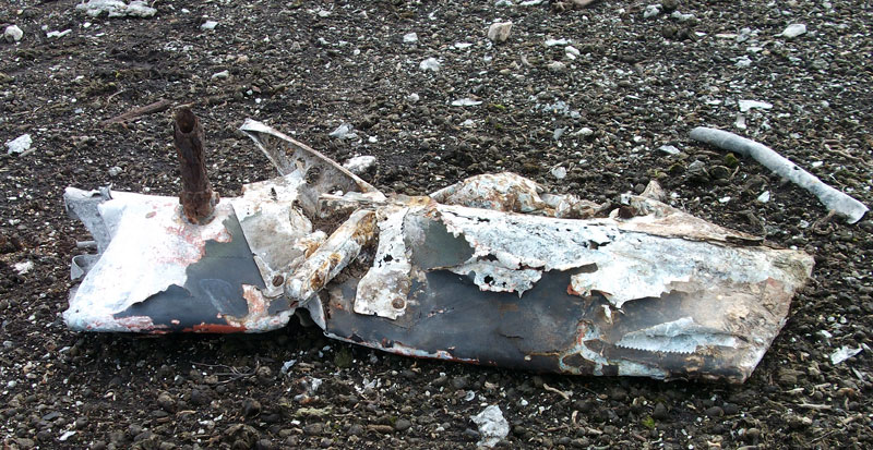 Two photographs of the port mass balance mounting as seen in March 2014. In 2008 this was partly buried and is shown in the photograph below.