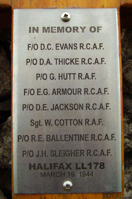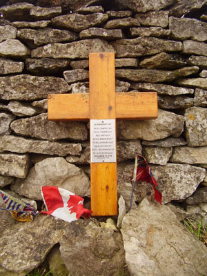 In late 2005 another memorial in the form of a wooden cross was also placed near the crash site, which also happens to be at the location which the Yorkshire Air Museum quote for the site. The cross was placed near the crash site by family friends of Doug Thicke, who on two occasions had visited the area.