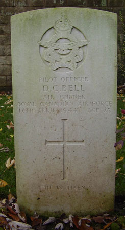 Air Gunner - P/O David Gordon Bell RCAF (J/88695), aged 25, of Lower Capilano, British Columbia, Canada. Buried Harrogate Stonefall Cemetery, Yorkshire.