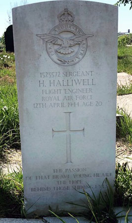 Flight Engineer - Sgt Harvey Halliwell RAFVR (1523572), aged 20, of Middleton, Lancashire. Buried Middleton (St Leonard), Lancashire.