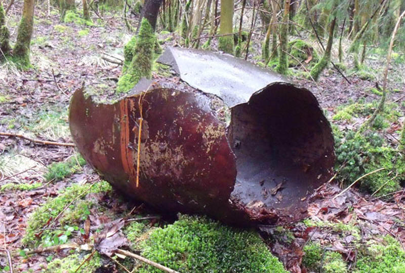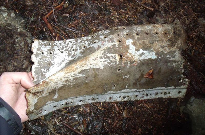 A small collection of remaining wreckage found in the stream in 2010.
