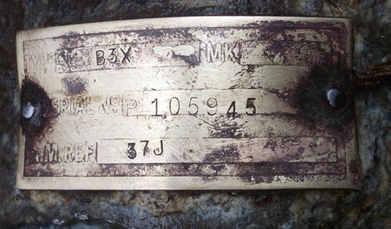 An English Electric inspection stamp located on one of the parts at the site in 2010. The other number seems to have been incorrectly stamped and an attempt has been made to overstamp it with the correct assembly number, with the same correct number being stamped underneath.