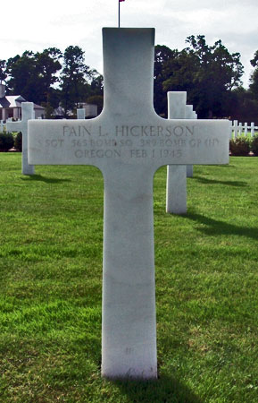 Nose Gunner - S/Sgt Fain Laver Hickerson USAAF (39916877), of Payette County, Oregon. Buried Cambridge Madingley Cemetery (B/5/11). Mother of Smelterville, Idaho, USA.