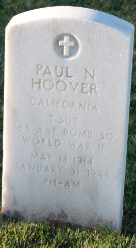 Paul Hoover was born on 18th May 1914. He is now buried in Golden Gate Cemetery, San Bruno, California. The photograph of his gravestone was found on the internet and posted by Tom Brocher.