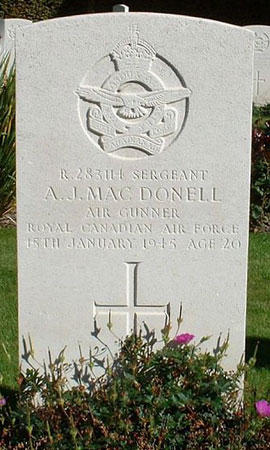 Sgt MacDonell was twenty years old and was buried at Harrogate Stonefall Cemetery with his crew on 20th January 1945.