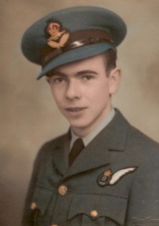 on 8th September 1942 in Calgary. He initially undertook pilot training but switched to become a bomb aimer around September 1943. He was awarded his Air Bomber's badge and also received a commission to the rank of P/O on 14th January 1944. He was then posted overseas in late April 1944 and arrived in the UK on 7th May 1944. On arrival in the UK he trained at 2 (O)AFU and 22 OTU, and was posted to 1659 HCU on 1st December 1944.