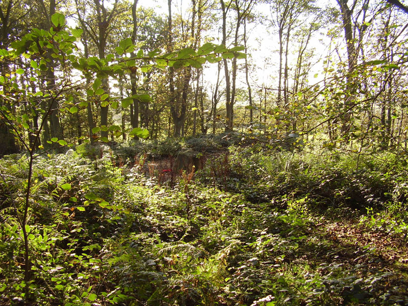 A general photograph of the memorial area in the woodland at Felixkirk.