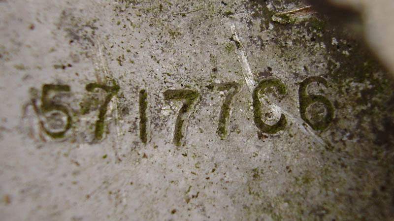 A number of small fragments of the aircraft have been located in the woodland since the creation of the memorial area and many of these smaller items have been placed near the memorial. I have however not got any good photographs of many of these parts but this only came to light when I gave this webpage a major update in December 2011. A number of small parts do contain typical Halifax "57" prefixed part numbers with one such part shown above.