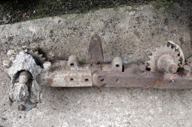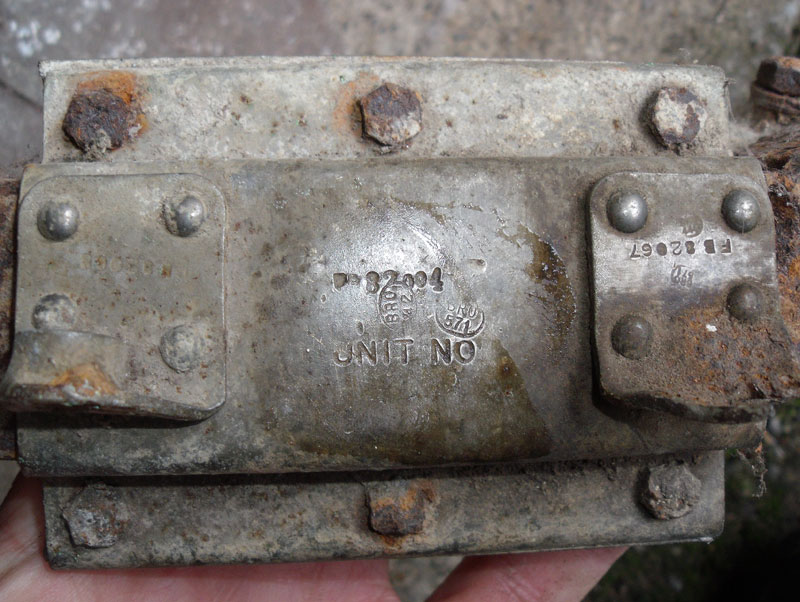 These two parts were found in reasonable condition, both parts remain unidentified though the one shown below is probably engine related as the part has a "FB" prefixed number on the right of the photograph, generally FB in aircraft that carried Bristol Hercules engines related to the two Bristol designers Fedden and Butler. The part above could be control related as a cog system was linked to the control column of the Halifax.
