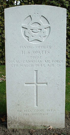 Pilot - F/O Humphrey Stanley Watts RCAF (J/37111), aged 28, of Calgary, Alberta, Canada. Buried Harrogate Stonefall Cemetery, Yorkshire (H/P/16).
