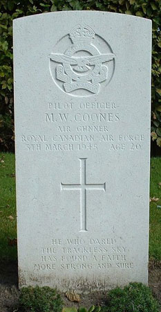 Mid Upper Gunner - P/O Maxwell Warren Coones RCAF (J/95426), aged 20, of Peterborough, Ontario, Canada. Buried Harrogate Stonefall Cemetery, Yorkshire (H/P/14).