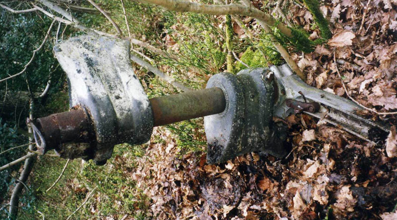 Part of one of the aircraft's undercarriage legs which was to be seen in woodland close to the crash site in 2004.