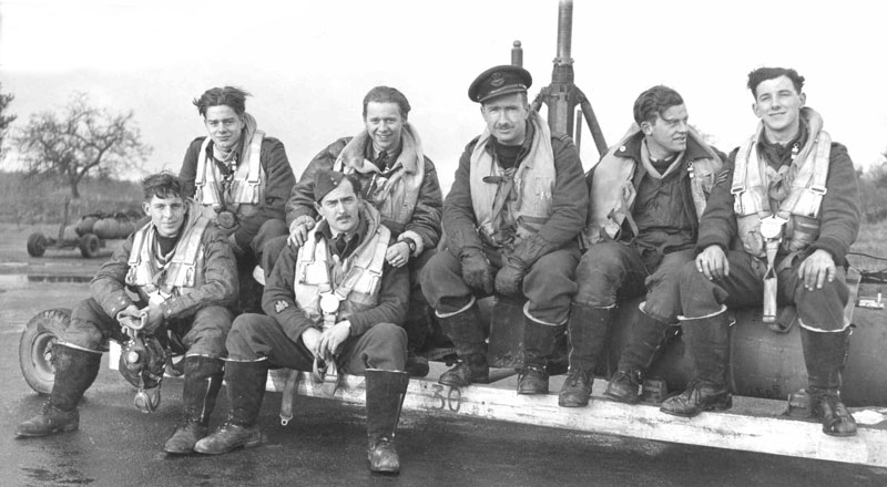 Humphrey Watts and his crew all killed in the accident near Hutton le Hole. "Mac, Frank, Ben, Bill, Skipper, Red, Toggie". I identify as follows... Back row L-R - Myers, Way, Watts, Biggerstaff, Togwell. Front row L-R - Coones, McCarthy.