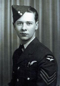 William Way was born on 14th October 1924 in Exeter, Ontario, Canada and was the son of Charles Fredrick and Julia May (nee Rivers) Way. The family moved to St.Thomas, Ontario when he was young and he attended school and college there. In 1941 he started working as a bank clerk at a local bank. He enlisted for RCAF service on 11th November 1942 in London, Ontario and with basic training complete he was awarded his air bombers' flying badge on 14th January 1944. On arrival in the UK he trained at 7 (O)AFU, 24 OTU and 1666 HCU before posting to 426 Squadron on 17th November 1944. I thank his niece Caroline Gulbronson for contacting me in May 2021 and for the information she was kind enough to provide.
