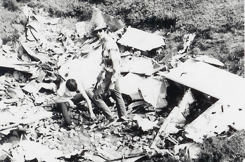 The Spitfire wreckage in the 1970's, with Mr Chris Hattersley (seated) and Mr Alastair McFarlane (with hat). I thank both gentlemen for contacting me.