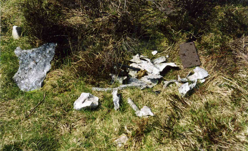 possibly until the 21st September 1945. The aircraft's remains were, in the main, not recovered but were collected together into an old small mine working, and they lay for many years with larger pieces of the aircraft still easily identifiable. In the 1970's the scrap man sadly got to it; the site was constantly being re-reported as a crashed aircraft