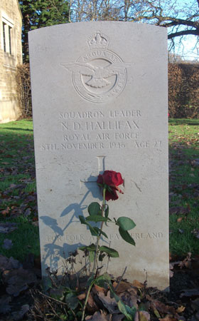 Pilot - S/Ldr Noel Dan Hallifax RAF (33404), aged 27, of Warren Mayfield, Sussex. Buried Harrogate Stonefall Cemetery, Yorkshire.