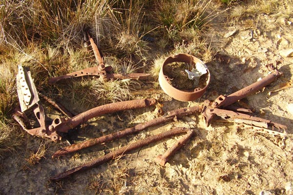 The majority of the remaining wreckage at the crash site today, undercarriage sections.