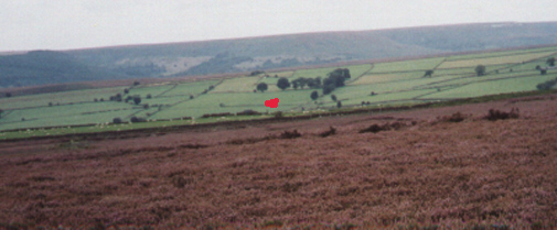 The red dot roughly marks where the Meteor crashed, photo taken from the opposite side of Bilsdale.