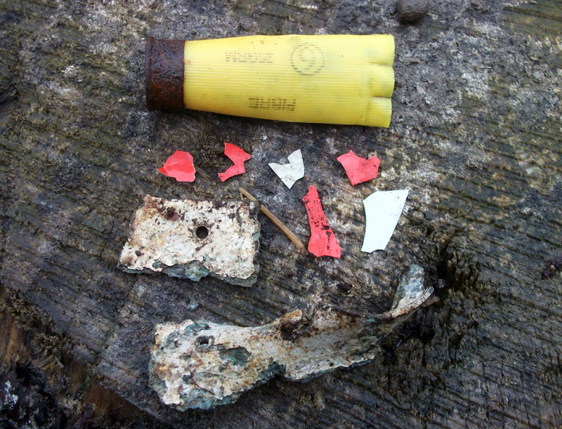 A sample of the coloured paint found in January 2013 shown with a shotgun cartridge for scale.