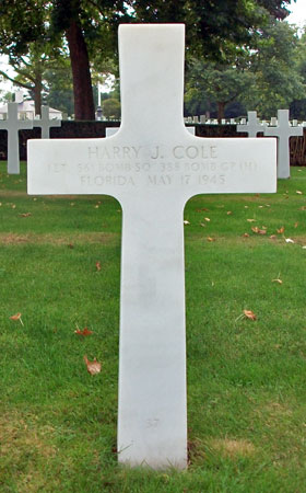 Pilot - 1st Lt Harry Joseph Cole USAAF (O-805402), aged 22. Of Miami, Dade County, Florida, USA. Buried Madingley Cemetery, Cambridge (D/5/37).