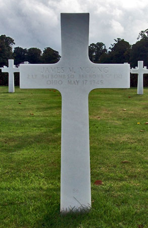 Navigator - 2nd Lt James Milton Young USAAF (O-2077543), aged 22. Of Ohio, USA. Buried Madingley Cemetery, Cambridge (F/5/86).