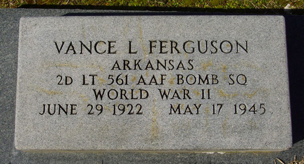 Co-Pilot - 2nd Lt Vance Lamar Ferguson USAAF (O-787796), aged 22, of Bradley County, Arkansas, USA. Buried Gravel Ridge Cemetery, Gravel Ridge, Arkansas, USA.