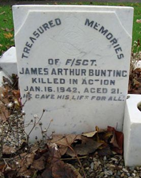 Navigator - F/Sgt James Arthur Bunting RAF (580639), aged 21. Buried Otley Cemetery (Newall with Clifton & Lindley), Yorkshire (I/211).