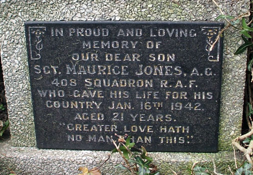 Wireless Operator / Air Gunner - Sgt Maurice Jones RAF (619483), aged 21. Buried Tibshelf Churchyard, Derbyshire.