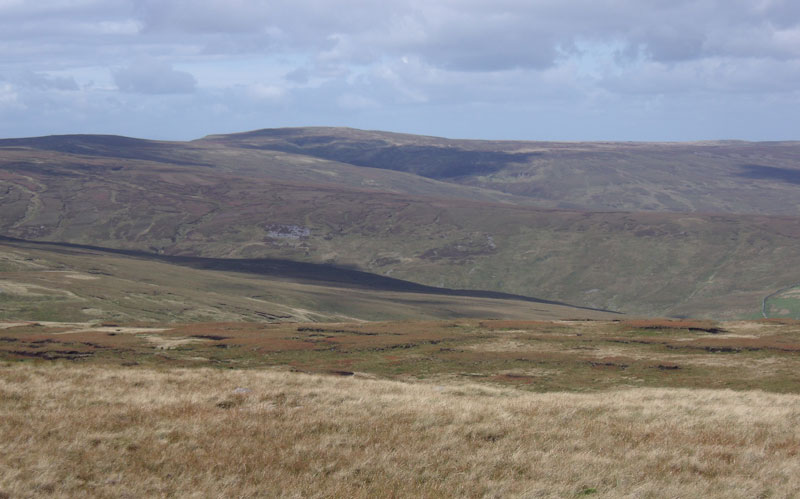 The aircraft crashed onto the ridge in the centre of the photograph above, as seen from the summit of Great Shunner Fell.