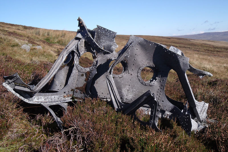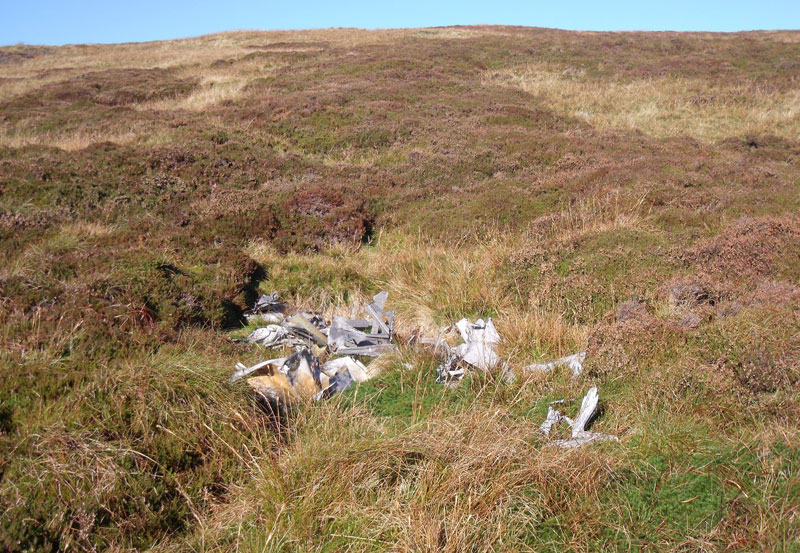 I visited the crash site following the first frost of the year in October 2010. What remains of the aircraft has been collected together in a depression on the moor though much of the