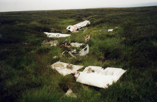 At 12.33hrs on 23rd September 1969 this aircraft took off from Newcastle airport to fly to Leeds-Bradford Airport with a student pilot flying solo, he was then due to make the return flight to Newcastle. The aircraft landed at Leeds Bradford airport at 13.25hrs having had to reduce height because of low cloud in the Leeds area. Had the pilot completed the return flight he would have gained his Private Pilot Licence. After over an hour on the ground at Leeds Bradford he took off at 14.42hrs but the weather by this time had deteriorated and it would appear from consulting the accident report that the pilot was struggling to locate his position soon after taking off. At 15.03hrs to attempted to make contact with Leeming airfield to get his position. Witnesses in a wide area of Nidderdale heard an aircraft fly over them in cloud around the time the aircraft was possibly in the area and it seemed likely that after becoming lost the pilot had attempted to return to Leeds Bradford airport because of the poor weather but had flown west and into high ground while lost. With the aircraft reported as overdue at Newcastle a search was arranged. Four Shackletons, two Canberras, four Beavers and several helicopters were used in the search but it would be a couple of days before the remains of the aircraft were located following an air search in a Varsity aircraft from RAF Cranwell. The wreckage of the Piper Cherokee was located on Gouthwaite Moor at Ashfold Gill Head, in the Yorkshire Dales. A ground search team made their way to the site and located and recovered the pilot's body with assistance from a military helicopter from RAF Leconfield. The investigation into the accient concluded that the pilot's inexperience in continuing his flight in deteriorating weather was the major factor into the crash and that inadequate supervision of his pre-flight planning was a factor as there was little supervision of his return leg of the flight plan before take off.