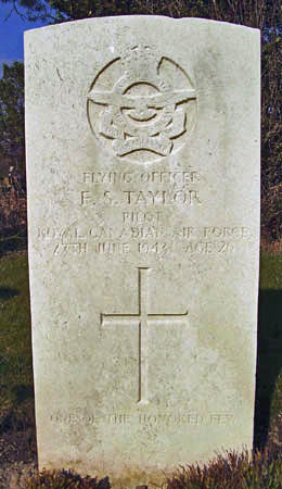 Pilot - F/O Frederick Stuart Taylor RCAF (J/20217), aged 26. Buried Harrogate Stonefall Cemetery, Yorkshire (20E/7097).
